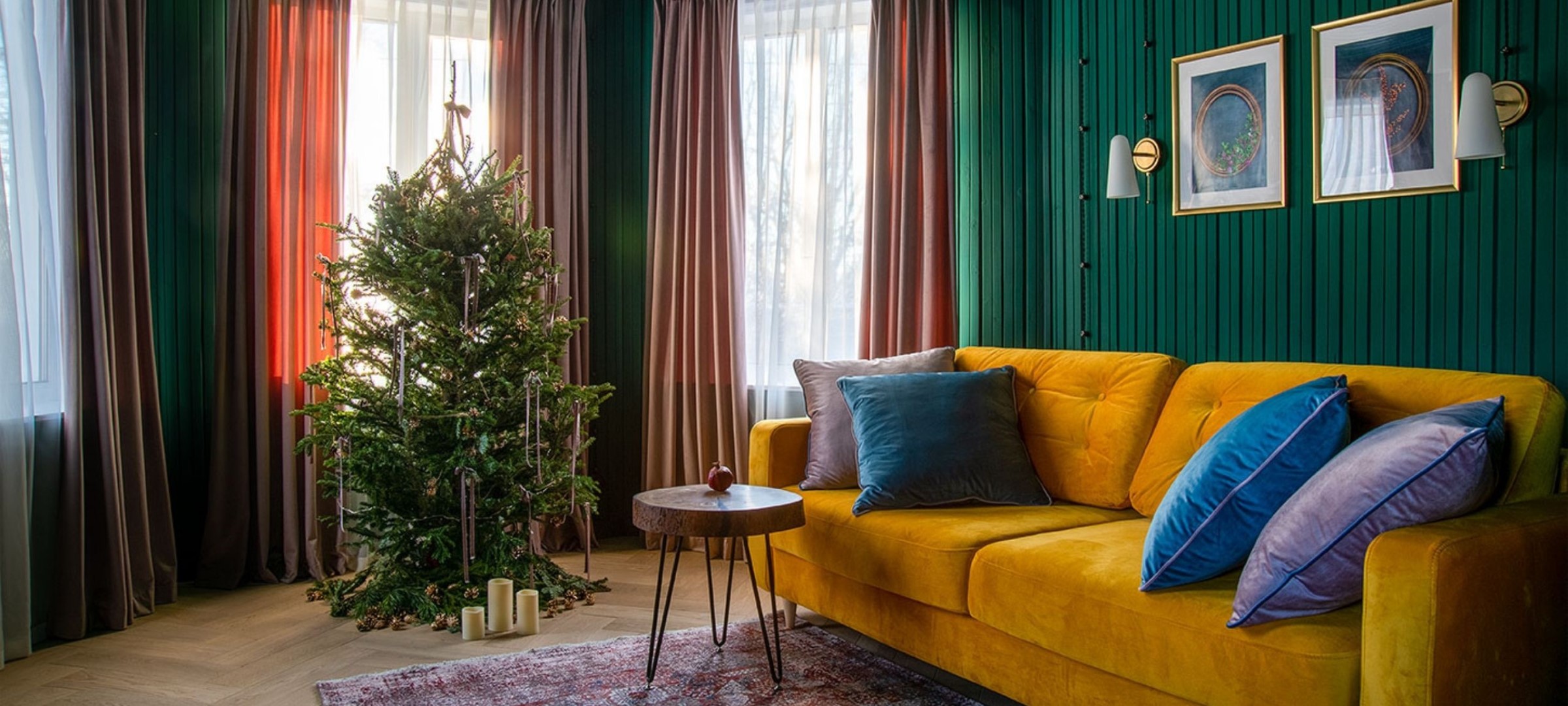 - Новогодний дизайн кухни-гостиной в загородном доме