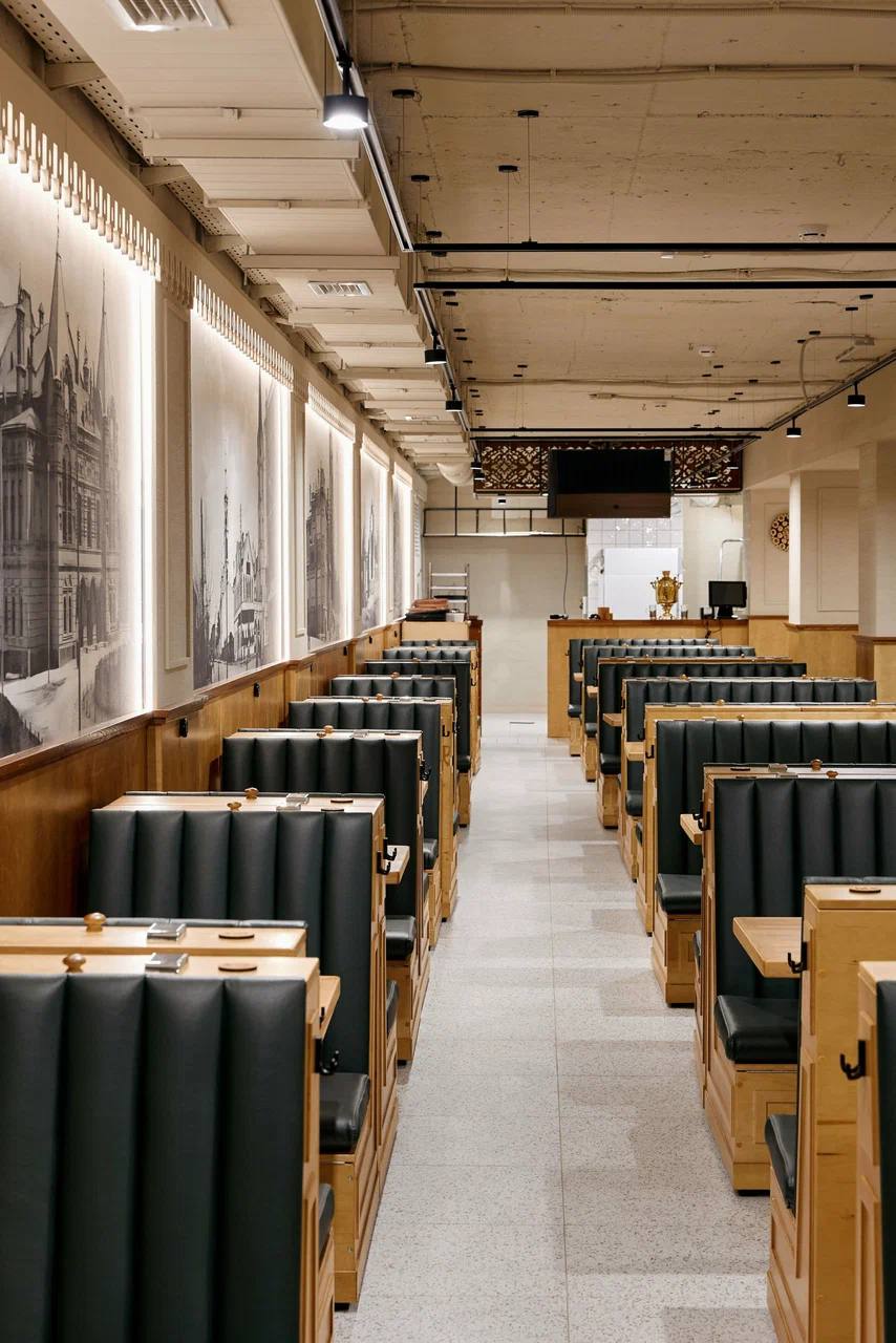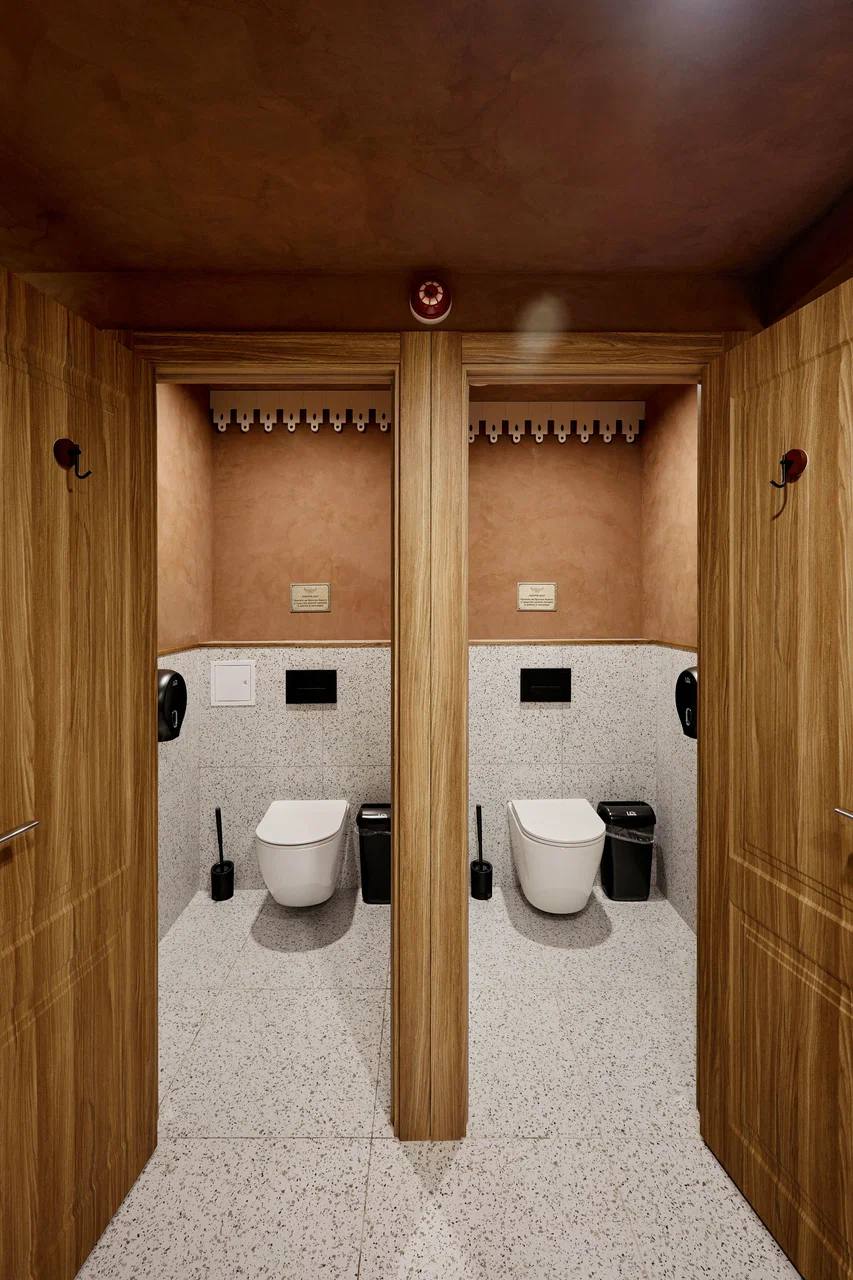 Губернские бани в Самаре — пример того, как традиционные мотивы могут быть интегрированы в современный интерьер. Натуральная древесина, спокойные фактуры и глубокие оттенки создают тёплую, расслабляющую атмосферу.