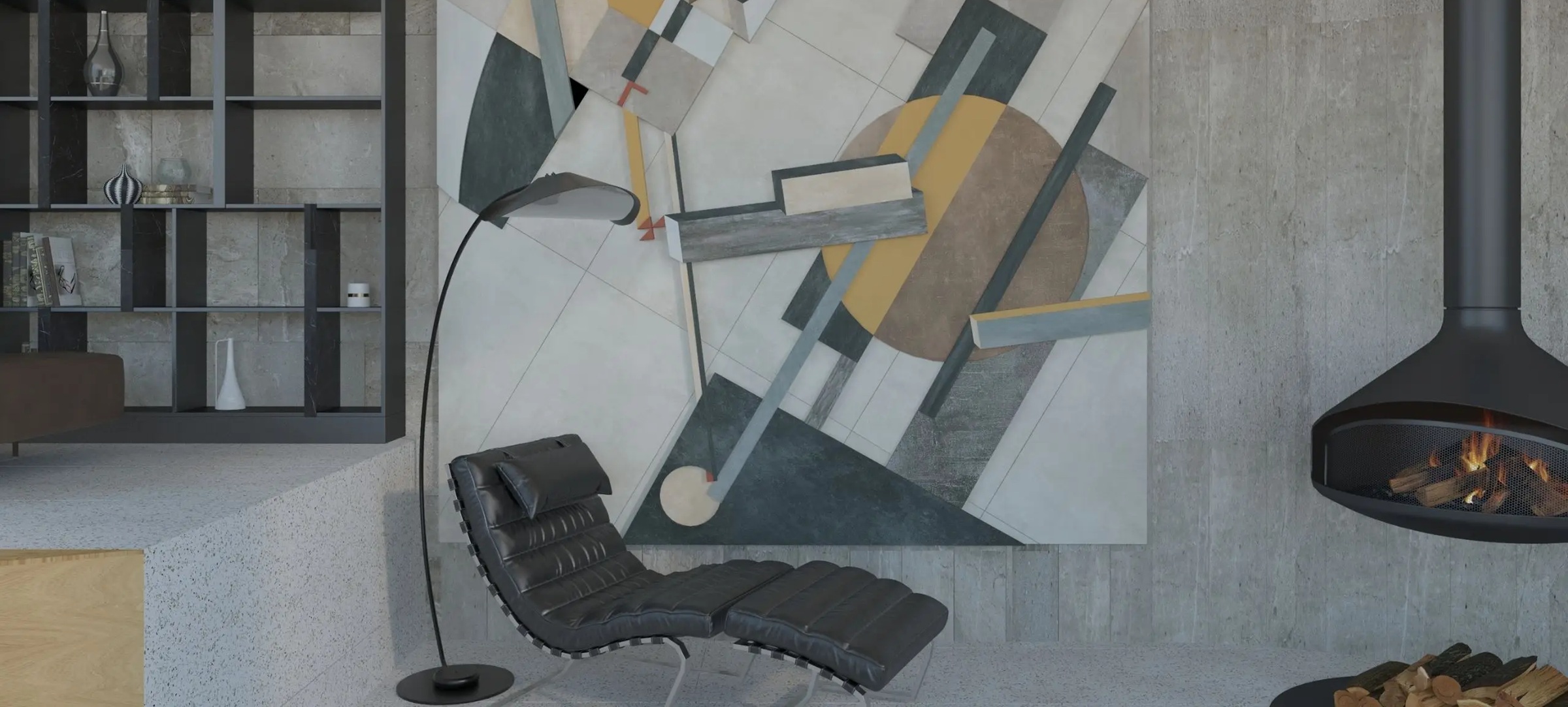 Гостиная с панно из керамогранита в стиле Эля Лисицкого