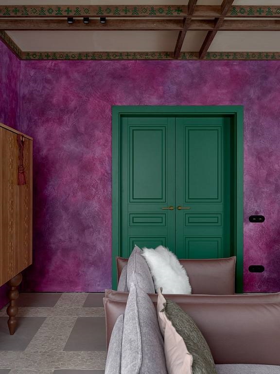 • Этот же материал применили и для подоконников — решение не только эстетичное, но и практичное, позволяющее сохранить визуальное единство интерьера.