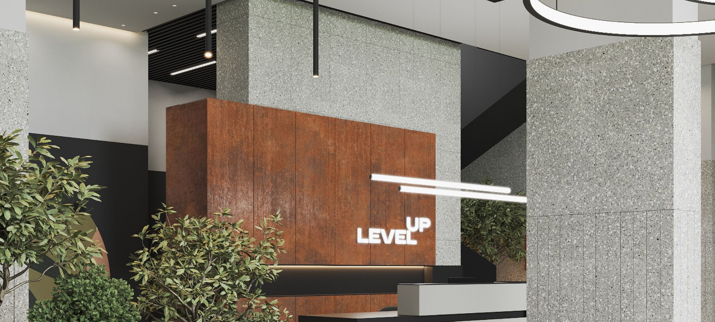 - Отделка ресепшена в ЖК " LevelUP" - проект Павла Меух